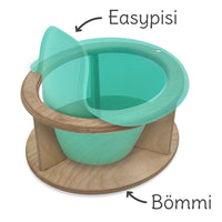 Extend the life of your Easypisi potty! With Boemmi you can turn the mobile potty into a stable potty. You simply put the potty into Boemmi and use the splash guard as a backrest. And when your child is big enough for the real toilet, you can simply flip Boemmi and use it as a footstool.